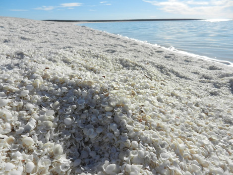 Με μήκος 120 χιλιόμετρα η «Παραλία των Κοχυλιών» βρίσκεται 45 χιλιόμετρα νότια-ανατολικά της πόλης Ντένχαμ στη δυτική Αυστραλία. Αποτελείται από εκατομμύρια μικροσκοπικά κοχύλια τα οποία μπορεί να βρει κανείς σκάβοντας ακόμη και σε 10 μέτρα βάθος.